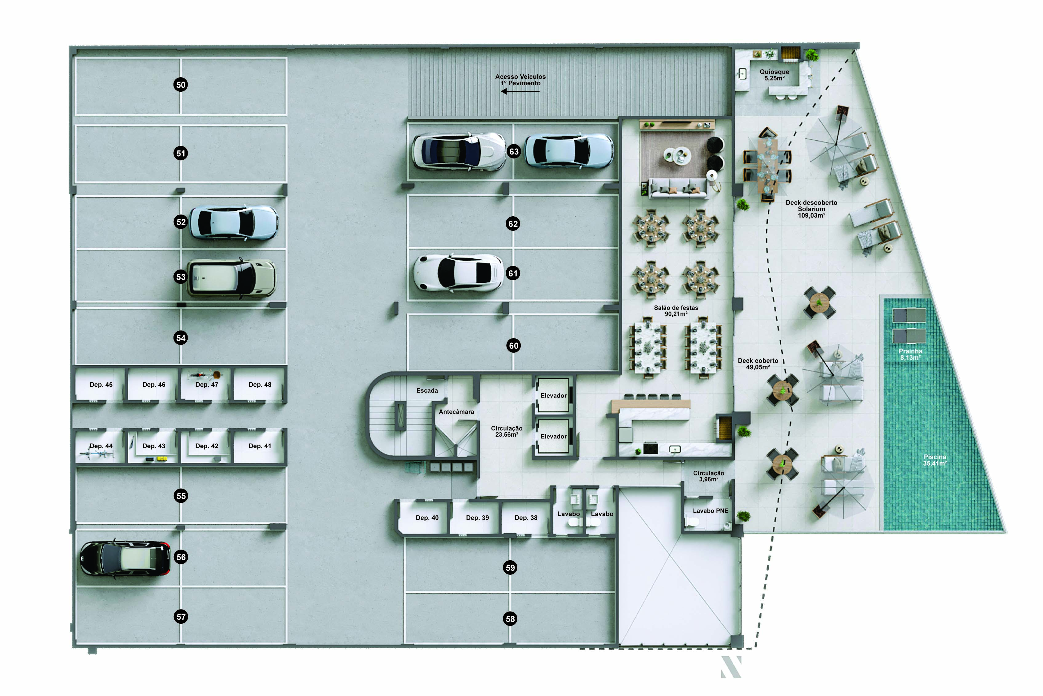 Todas as áreas comuns do Mar Positano Residencial adotam uma abordagem que prioriza a experiência de uso até mesmo em pequenos detalhes, como a sensibilidade ao toque e o conforto luminoso.